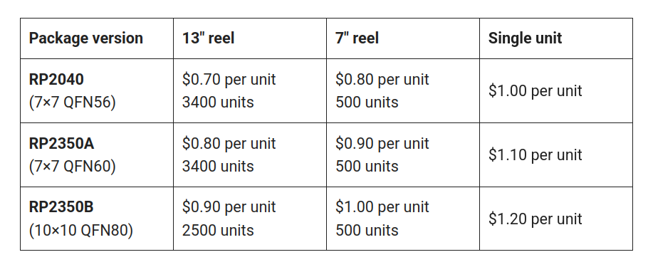 RP2350-Evaluationsboards gibt es per Se seit einiger Zeit zu kaufen – alleinstehende Mikrocontroller waren derzeit nur Freunden des Hauses vorbehalten. Im Rahmen einer vor wenigen Tagen erfolgten Ankündigung vermeldeten die Uptoniten nun, die Einzelchips bald wie in der Abbildung gezeigt zu bepreisen und zu verkaufen.