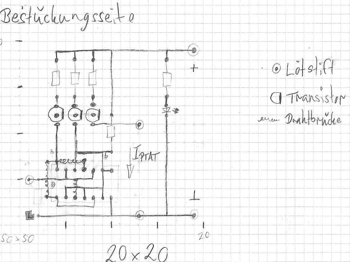 Lochraster-Layout einer PTAT-Stromquelle in Bestückungsansicht