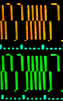 In jeder Spalte wird ein sample dargestellt, damit können 512 Samples auf 512 Spalten eines 800x600 dargestellt werden und der u.U. schwer lesbare Seitenrand wird ausgespart. Um den Wert einzelner sample bei dieser dichten Anordnung noch zu unterscheiden zu können wird der samplewert wie folgt dargestellt