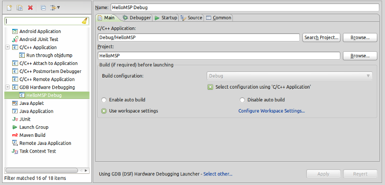 Debuggen mit Eclipse eigenem Debugger via mspdebug bzw. msp430-gdbproxy
