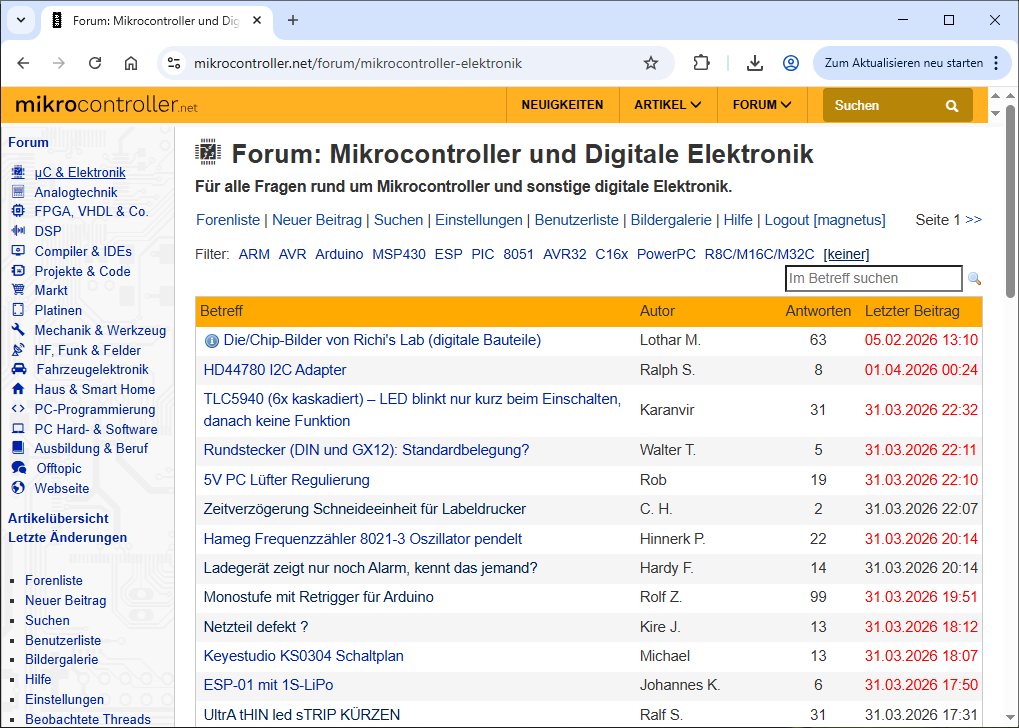 Kontakt/Impressum – Datenschutzerklärung – Nutzungsbedingungen – Werbung auf Mikrocontroller.net