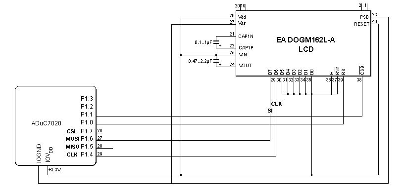 Ich habe ein LCD EA DOGM162L-A mit einem ADuc7020 geschaltet und