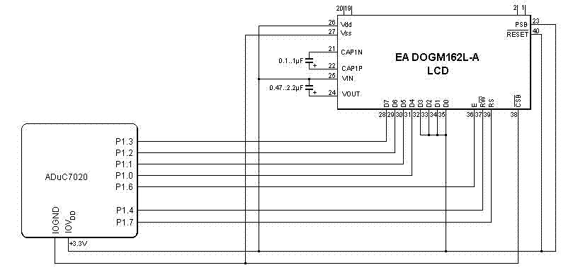Die Linke für das DOG Module : http://www.lcd-module.de/eng/pdf/zubehoer/st7036.pdf für ADuc7020: http://www.analog.com/UploadedFiles/Data_Sheets/ADUC7019_7020_7021_7022_7024_7025_7026_7027_7028.pdf