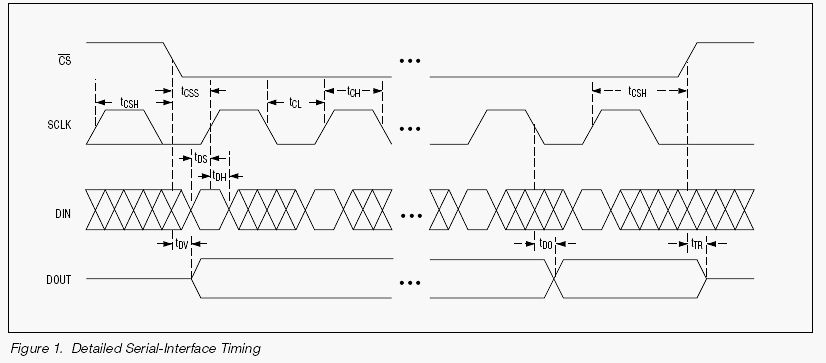 > Im Datenblatt habe ich eine Zeichnung gefunden, aus der hervorgeht, dass > MOSI im idle-Zustand tatsächlich high sein soll, also low-aktiv ist. Low-Aktiv bedeutet in der bekannten Interpretationsweise eine Aktivierung irgendeines Signals mit Pegel = '0'. Das gilt z.B. für Chip-Selects, wenn mit '0' ein Baustein aktiviert werden soll ('0'-aktiv = low-aktiv). Bei einer Datenleitung redet man von low-aktiv, wenn mit niedrigerem Pegel eine '1' übertragen wird (z.B. RS232). SPI ist auf der Datenleitung High-Aktiv (high='1', low='0'). > Ein Prob ist es trotzdem, da an dem SPI ein max3100 hängt, > der ein high-aktiven MOSI erwartet. Sieh dir mal die Abbildung 1 im Datenblatt des MAX3100 an. Nur während der steigenden Flanke von SCLK muß DIN (MOSI) stabil sein. Sonst ist der Pegel beliebig. Ich würde sagen, du hast kein Problem mit MOSI, sondern mit der Taktzuordnung (SPI-Mode). > Hat irgendwer eine idee, wie ich das problem lösen kann? Den richtigen SPI-Mode verwenden? CPOL = 0 CPHA = 0 Siehe auch http://www.totalphase.com/support/kb/10045/