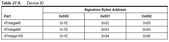 Die Signatur steht auch nur in Fuses drin, insofern kann es schon mal passieren, dass sie versehentlich gelöscht wird. In der Anfangszeit der AVRs war dies noch relativ einfach möglich, sodass diese Möglich- keit sogar in der Appnote AVR910 erwähnt worden ist. Mittlerweile hätte ich erwartet, dass dies nur über eine Art ,,Freischaltcode'' noch möglich ist, aber wer weiß, wie du's geschafft hast. Der AVR kann trotzdem noch funktionieren. Bei AVRDUDE kann man die Programmierung aus diesem Grunde mit -F trotzdem noch erzwingen, dann gibt's für die falsche Signatur nur eine Warnung, aber er macht einfach blind weiter mit Programmieren.