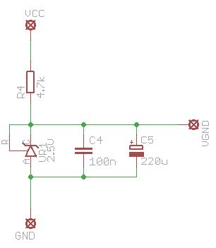 Er meint halt einen virtuellen Ground, um das Ding an single supply zu Betreiben. Von dem Spannungsteiler würde ich dir abraten, das gibt üble galvanischen Einstreuungen. Was ich dir aber empfehlen würde, wäre eine Spannungsreferenz zu benutzen. Siehe dazu das angehängte Bild. Das Ding, was wie eine Diode aussieht ist eine TL431 Spannungsreferenz für 2.5 V. Die Kondensatoren sieben das ganze noch ein wenig. Natürlich rauscht das ganze ein wenig, ist aber viel weniger übel als ein Spannungsteiler. Es gibt natürlich auch teure präzise rauscharme Referenzen. Aber ich denke ja nicht, dass du ein GPS-Signal verstärken willst oder so.