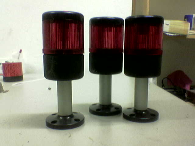 3 rote Signalleuchten, bei einer scheint schon mal das Leuchtmittel zu fehlen, aber da wo sie drin sind, würde ich nicht drauf wetten dass sie noch heile sind.