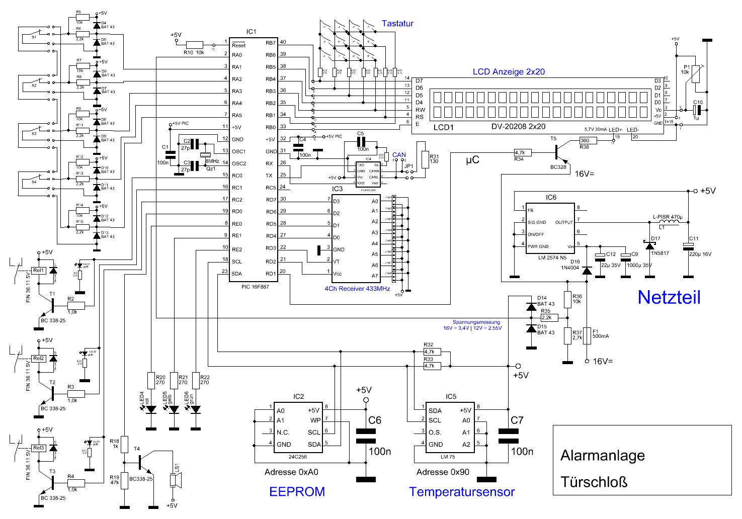 Das ist sicher richtig, allerdings reichen dann die Pins auf meinem Wannenstecker nicht. Ich habe die gesamte Elektronik auf der Hauptplatine. Nur Display und Tastatur ist in den Deckel eingebaut und über einen 14-poligen Wannenstecker verbunden. Diesen Stecker benutze ich auch gleichzeitig als Programmierschnittstelle. Nun habe ich nur noch einen Pin frei über den ich die Hintergrundbeleuchtung schalten kann. Ich kann also nicht LED+ fest auf 16V legen und LED- schalten, da der Transistor auf der Hauptplatine sitzt. Ich müsste erst die 16V über einen Pin zum LCD bringen und dann LED- wieder zurück auf die Platine. Macht zwei Leitungen. Ich brauche eine Lösung, mit der ich LED+ über eine Leitung schalten kann. LED- ist am Display mit GND verbunden, so dass ich bei dieser Variante mit einer Leitung auskomme. Sven