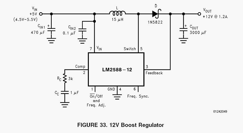 Der LM2588 wäre auch für meinen Zweck geeignet (Netzteil für Anodenspannung 12V -> 200V), wenn man ihn als Flyback betreibt. Im gegensatz zum LM2577 kann der 5A Schalten, und die Frequenz ist höher.