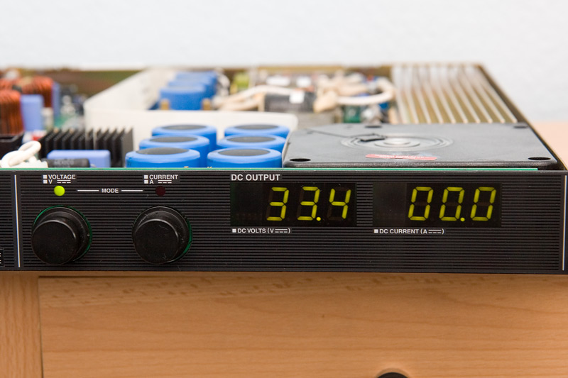 Da ich nur beschränkten Platz auf meinem Arbeitstisch habe und das Gerät eher eine Rackmount-Flunder ist will ich mich von besagtem Gerät trennen. techn. Daten: - 33V 33A 1000W / Schaltnetzteil - 115 / 230V (50/60Hz) Netzbetrieb (Anschluss über Schraubklemmen) - Anschluss der Last über Stromschienen (rückseitig) - Strom und Spannung über 10-Gang-Potis einstellbar - einstellbare OVP (over voltage protection) - Anzeige von Strom und Spannung über grüne 7-Segment-Anzeigen - fernsteuerbar über U, I oder R (für Spannung und Strom) - 19" Rackmount 1HE, 44 cm Tief (ohne Anschlüsse) Voll funktionsfähig. Gerät optisch in einwandfreiem Zustand. 4mm Anschlussklemmen kann ich dran lassen, sind aber nur bis 10 Ampere!!! Netzanschluss kann ich ebenfalls so belassen (Kaltgerätebuchse), jedoch dann auf eigene Verantwortung des Käufers! Versand versichert per DHL. Vorzugsweise tausch gegen etwa gleichwertiges Netzgerät: - mind. 30V / 30A - mind. 500W - "Tischgerät", sollte jedenfalls tischtauglicher sein als das Sorensen - Digitalanzeigen oder andere Messtechnik (Funktionsgenerator, Oszi) ansonsten Verkauf Preisvorstellung: 350,- Euro VHB (Listenpreis des Geräts: 4750,- US$) Handbuch: http://www.elgar.com/products/DCS/downloads/DCS-E_1.2kW_Operations_Manual_M362500-01_RevC.pdf Bilder: http://dareal.info/verkauf/sorensen/ Kontakt per Forum oder ICQ (37520727)
