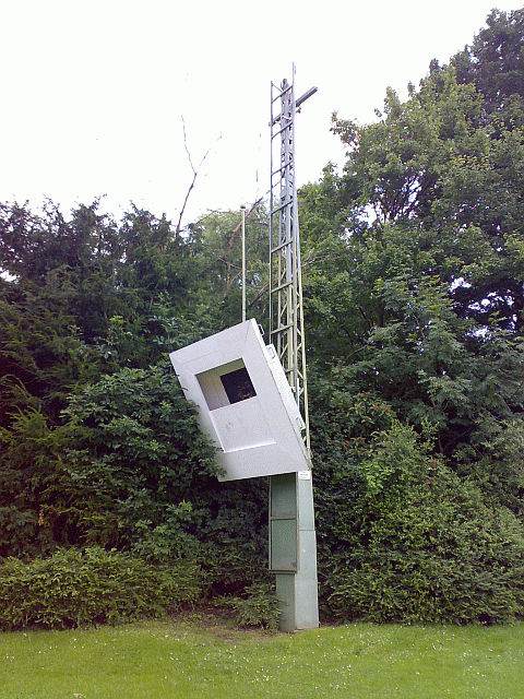 Ok: >Könnte ein alter Handy oder sonstwas Funkmast sein. Wobei es scheint, >dass die Plattform runtergefallen ist. Heruntergefallen ist die nicht, da gibt es eine Hochkurbel-Vorrichtung dran. >Was steht auf dem weißen Schild? Da steht drauf: Aufstieg für Unbefugte verboten. >Ist der Betonteil dort festgemacht Der Betonteil besteht aus Holz (Front) und Stahlblech (Seiten und Hinterteil). >Steht der Mast zufällig in der Nähe eines Gewässers? Negativ. >Schützenfest... mal so als Stichwort Gutes Stichwort, in dem Trichter waren diverse Einschusslöcher zu sehen. Handelt es sich dabei tatsächlich um eine Art Kugelfang?! Schöne Grüße, Alex