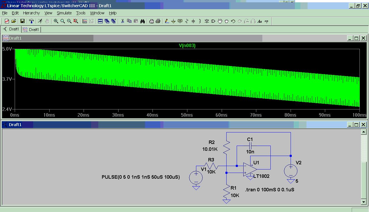 Wenn denn so funktionieren wuerde. Offsetspannung des OPs und Bauteiltoleranzen wuerden innerhalb einiger Zeit den Integrator an die Austeurungsgrenzen bringen. Das ist eine Schaltung die nur in der Theorie so funktioniert. Ich habe das gerade mal simuliert und habe einen der beiden Spannungsteilerwiderstaende mal um 10 Ohm variert. Nach einiger Zeit laueft der Integrator dann an seine Betriebsspannungsgrenze. Gruss Helmi