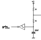 ein signal-delay (vermutlich für ein reset-signal?). die delayzeiten der beiden flanken (high-low, low-high) sind durch die beiden widerstände unterschiedlich eingestellt.
