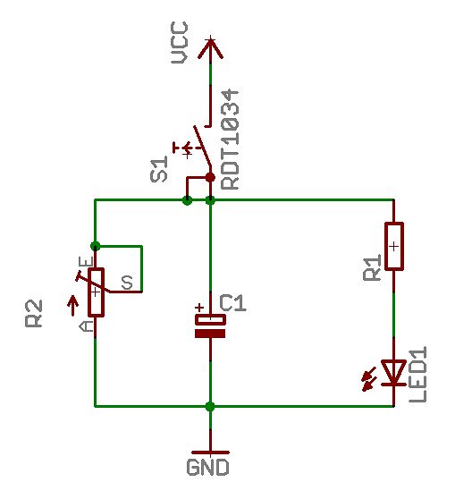 >Sobald auf einen Taster gedrückt wird, soll für eine bestimmte Zeit (am >besten über einen Poti einstellbar) eine LED eingeschaltet werden. Und wozu der zweite Taster? Ohne weitere Daten könnte ich das z.B. so machen wie im Bild. BTW: Ist eine Schalterschaltung sowas wie eine Tastertastung?