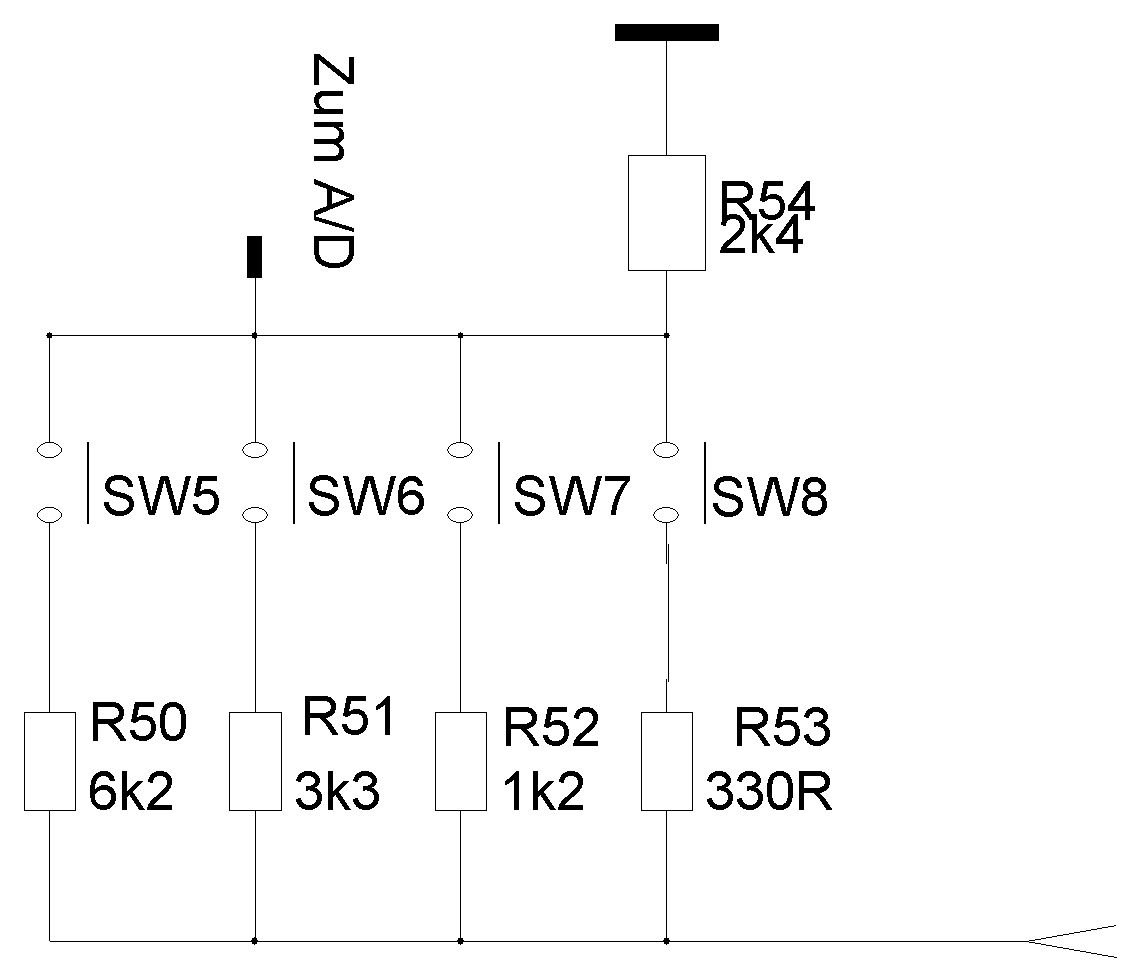 Wenn die Ports knapp sind benutze ich einen A/D-Eingang. Beispiel mit 4 Tasten als Anhang. Grüße Wolf