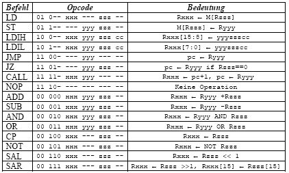 Befehlssazt sieht wie folgt aus (links der Opcode, dazu jeweils ein
