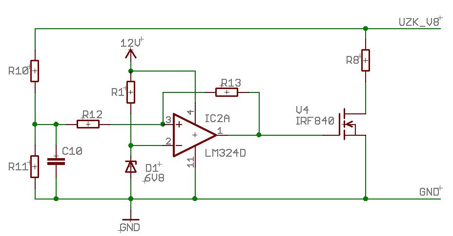 Wenn hier die Spannung V8 eine Obergrenze erreicht, schaltet sie den