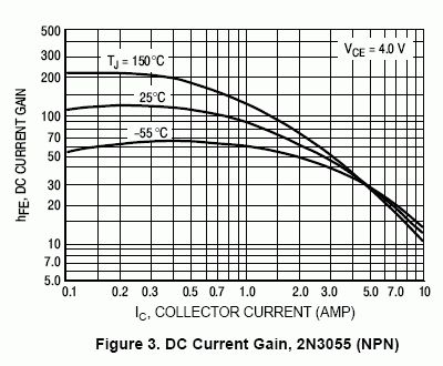 Der 2N3055 ist der Powertransistor. Zum Beispiel in der 100 Watt Verstärkerendstufe sind zwei drin pro Kanal. Diese haben, wie alle bipolaren Powertransistoren nur eine Stromverstärkung im Bereiche um die Zehn. Also aus 1 Ampere Steuerstrom (Basis) werden am Collector 10 Ampere. Das reicht doch ? Will man mehr, muß man noch andere Treibertransistoren vor den BD130 alias 2N3055 schalten. Zum Bleistift einen BD240 (bzw. 245) Und davor noch einen BC140 (BC160 weiß nicht genau welcher nun NPN oder PNP) und dann erst die NF-Ansteuerung mit den üblichen BC547 oder so. Also, Du brauchst wohl noch Treibertransistoren davor.