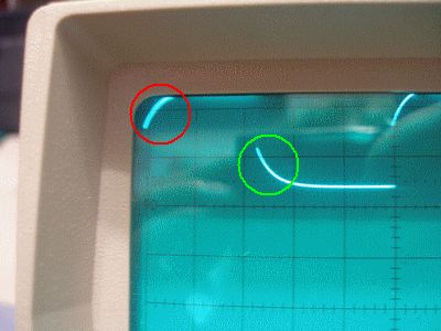Hallo zusammen, ich habe ein kleines Problemchen mit meinem Oszilloskop. Stelle ich den Strahl mit dem Focus-Knopf so ein, dass er in der Bildmitte messerscharf ist, wird er am Bildschirmrand dennoch unscharf. Am meisten in der oberen linken Ecke. Ich kann es so einstellen, dass er in der Ecke scharf wird, aber dann ist er in Mitte wieder unscharf. Zur Anschauung habe ein Bild angehängt. Roter Kreis : Ecke unscharf Grüner Kreis : Mitte scharf Ist das normal oder liegt da ein Fehler vor. Das Gerät ist ein Hameg HM 203-7 Baujahr 1993. Danke schon mal.