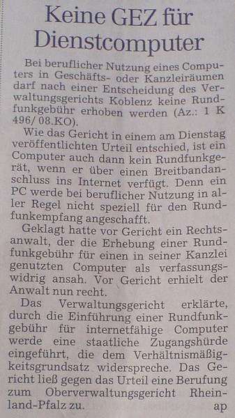 Das wurde auch mal Zeit ich hoffe das Urteil macht Schule und hält Stand auch bis vorm BVG. Ich wohne zwar längst nicht mehr in D. aber das Gebahren so mancher Institutionen hat mir schon lange missfallen.