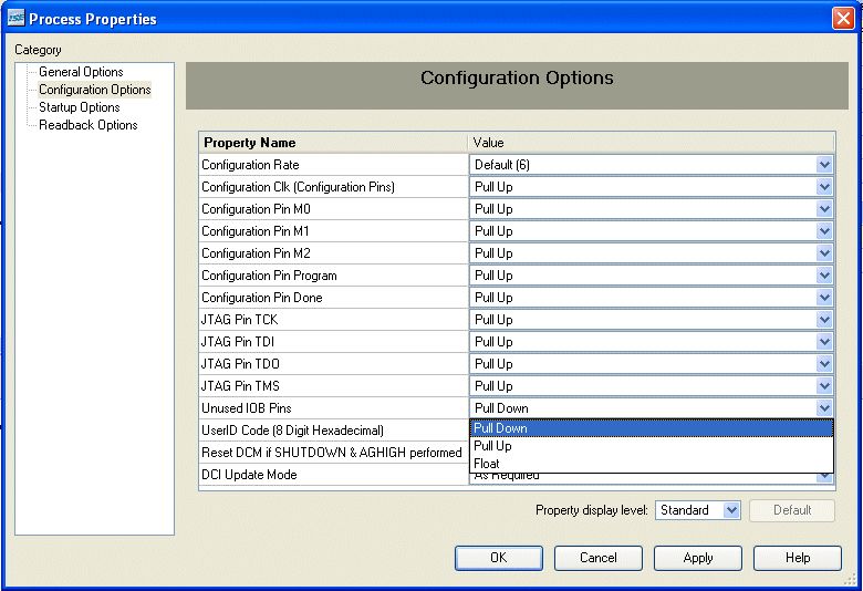 >... ich eher erwartet hätte, dass die IOs des FPGA während >der Konfigurierung hochohmig sind ... Zumindest bei Xilinx lässt sich das einstellen (Bild)...