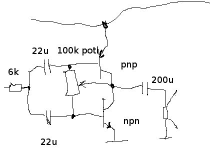 Hallo bräuchte jetzt noch eine kleine Verstärkerschaltung am Ausgang den Lautsprecher mit 1 oder 2 transistoren ebenso für 1,5 V wäre gut wenn einer etwas funktionstüchtiges da hat. habe mal ein bisschen probiert mit einem transistor SF121oder SC239 ist aber so noch nicht brauchbar Signal etwas verzert und auch nur sehr geringe Lautstärke der Minils.hat ca 27 Ohm Spulenwiederstand . schliesse ich an den eingang einen zweiten Verstäker an so ist das ankommende signal ok.