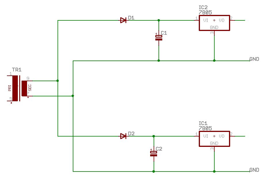 @annemarie (Gast) >Ein Trafo liefert EINE 12V Wechselspannung, also EINE Sekundärwicklung. >An diese Wechselspannung werden 2 Brückengleichrichter angeschlossen, >deren Ausgänge dann jeweils eine eigene Siebung und eine eigene 5V >Regelung haben. Wozu dann ZWEI Gleichrichter? Nimm einen und klemm dahinter deine beiden Regler, wenn man denn WIRKLICH zwei braucht. Schwups, nur noch eine Masse. MFG Falk