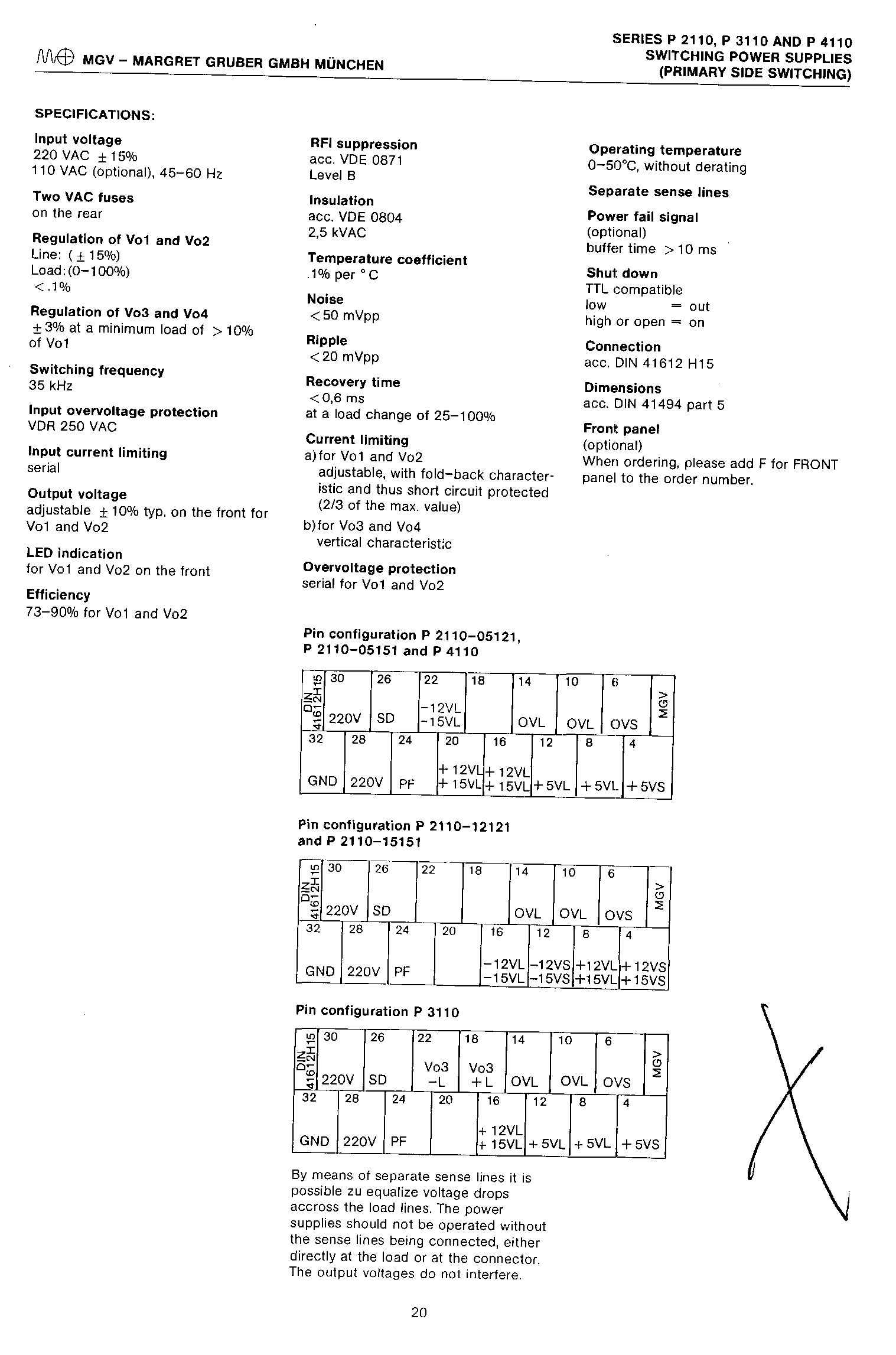 Hallo, habe ein Schaltnetzteil MGV P3110-05121 liegen und möchte es testen und bei i.O.-Funktionstest einsetzen. Es handelt sich um ein Baugruppeneinschubgerät, welches Sernsoranschlüsse hat. Stehe etwas auf dem Schlauch, was muss ich den jetzt verbinden???? Habe mal die Datenblätter beigefügt. Aus dem Bauch heraus wuerde ich: 10:0VL mit 6:0VF 8:+5VL mit 4:+5VF für die 5V verbinden dann bin ich aber schon am Ende meines Lateins, oder war es das etwa schon?? Gruß aus Wolfsburg Christian