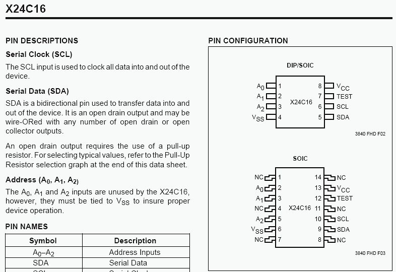 Guten Abend, beim Stöbern bei "dieser einen Plattform" bin ich auf den X24C16S von XICOR gestoßen. Der Chip an sich ist "harmlos", jedoch gibt das Datenblatt zum 14-PIN Version des ICs einen ungenutzten 3-Bit-Bus zur Adressierung preis. "Address (A0, A1, A2): The A0, A1 and A2 inputs are unused by the X24C16, however,...." Das macht mich nun wuschig. Sind/Wären diese Adresseingänge dazu da um innerhalb der sog. Page einzelne Zeilen(bzw Bytes) anzusteuern? Wenn JA dann wäre dieser spezielle Chip hoch interessant für mich. Die Suche bei Intersil war ergebnislos. Sofern jemand diesen Chip (noch) kennt der auf den Adress-Bus reagiert und sofern er jemals exestiert haben sollte, so bitte hier den Namen dieses Chip's zu hinterlegen. -Tausend Dank im Voraus- Um es kurz zu sagen: Ich möchte Technik der 80-iger Jahre mit aktueller Technik verschmelzen. Eine geruhsame Nacht.