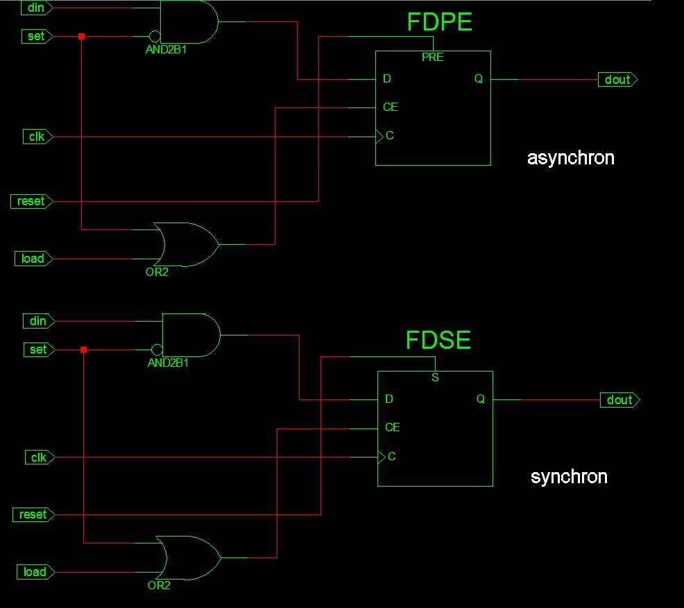 und clear) oder synchron (FDRS, mit set und reset) konfiguriert werden.