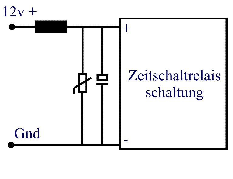 Bei 100 Ohm davor und 200mA Stromaufnahme fallen da 20V ab und das ist mehr als deine Versorgung bringt. U = I x R Und du brauchst auch keine Diode parallel zu Entstoerdrossel zu legen. Wenn du die Schaltung so aufbaust ---+-----+-----L-----+------Uaus | | | C2 Var C1 | | | GND GND GND L = Drossel C1 = Elko C2 = 100..470nF Car = Varistor Deine Drossel ist durch die Last und den Varistor b.z.w. durch die groesse der beiden Cs so bedaempft das die ganze Sache keine nennenswerte Spannungsueberhoehung macht. Die Drossel ist ja nicht alleine in der Schaltung sondern bildet mit den beiden Cs einen Schwingkreis der durch den Varistor und die Last bedaempft ist. Da koennen keine hohen Spannungsspitzen entstehen weil das ein sehr schlechter Schwingkreis ist. Um nun genau zu sagen wie die Schaltung sich beim Ein/Ausschalten verhaelt kann man das ganze unter Spice simulieren oder die entsprechende DGL aufstellen und loesen. Eine Diode parallel zum L kann dir die Wirkung der Drossel unter Umstaenden aufheben. Wenn deine Diode so geschaltet ist das die Kathode am Eingang und die Anode auf dem Ausgang zeigt und jetzt ein negativer Transient am Eingang anliegt dann fliest dessen Energie ueber die Diode in dei Schaltung. Es entstehen ja nicht nur positive gerichtete Transienten sondern auch negative. Und fuer die negativen ist die Drossel qausi ueberbrueckt. Wenn du noch eine Strombegrenzung haben willst dann bau eine Sicherung in den Eingang. Aber Achtung der Elko koennte dir die Sicherung ausloesen beim Einschalten. Gruss Helmi