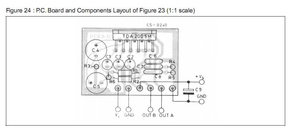 Der TDA 2005 läuft von 8-18 Volt , nur der HFO Typ A2005 schon mit 4 Volt , allerdigs bei so kleiner Versorgungspannung ca 1 Watt am Lautsprecher . Du musst dem Verstärker erst mal eine Vernünftige Stromversorgung bieten 12 Volt bis 16 Volt bei Brückenbetrieb und ca 4 Ampere pro Kanal . Anders kann der Schaltkreis keine Leistung bringen, wenn das Teil ca 20 Watt am Ausgang bringen soll müssen mind . 40 Watt in das Teil rein . Mit 1 Glas Mineral komme ich auch nicht das Matterhorn rauf ...Dann das Layout Deiner Schaltung :da wird das Teil übelst zum Schwingen anregen . Wegen der hohen Verstärkung schwingen sich die Teile gern auf . Miss den Ruhestrom, wenn das Teil sehr warm wird und einen hohen Strom ständig zieht, schwingt es. Die Querschnitte lassen auch keine hohen Ströme zu .Wichtig auch , wenn nicht das wichtigste : Ein ordentlicher Kühlkörper min 2 K/W muss montiert werden, Bauteil mit Wärmeleitpaste auf Kühlfläche bestreichen . Der Kühlkörper hat dann die richtige Grösse, wenn das Teil auch nach einer Std. mit hoher Lautstärke max. handwarm wird .... Viele Grüsse Matze