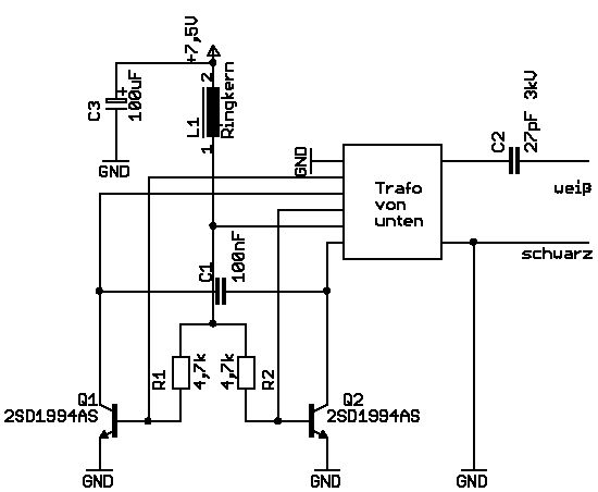 Spulen auf der seperaten Ansteuerplatine deuten auf die Erzeugung