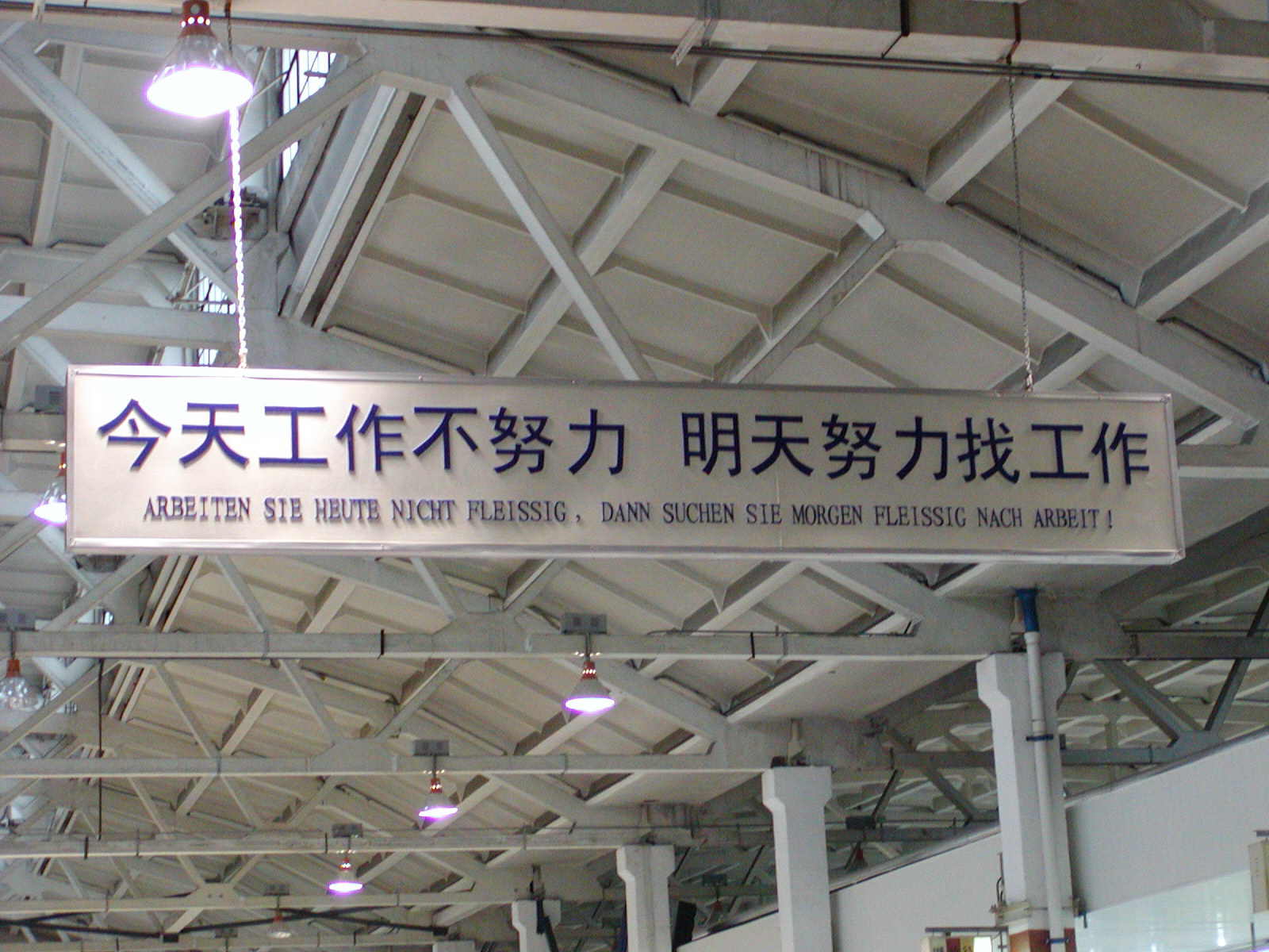 Das ist Chinesisch, aufgenommen wohl in einer Produktionshalle.