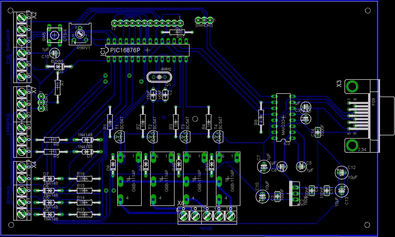 @ Felix Höning (master-tracker) >> So dick es geht, min. 50mil, daß ist so ein Richtwert. Käse. Selbst die geschmähten PICs sind keine Heizlüfter. 10mil sind ausreichend, die paar mA spielen keine Rolle. Was ich aber reichlich verdächtig finde ist die Leitung, ganz unten quer rüber. Was ist das? Ich würde sagen dein 5V. Und die führst du a) im RIESIGEN Bogen über die Platine b) direkt an den 230V Anschlüssen vorbei Das nenn ich mal mutig ;-) a) Baut dir eine grosse Antenne (Leiterschleife), die förmlich danach schreit, dass EMV-Dreck reinspuckt b) bringt dir ordentlich kapazitive Einkopplungen Lass man den 230V Bereich KOMPLETT frei, auch die Freilaufdioden gehören dort NICHT hin. Als Dauemregel sollten der Minimalabstand Spulenkontakte-Schaltkontakte auch zu ALLEn anderen Signalen auf der Platine eingehalten werden. Und du hast MASSIG Platz. Leg deine 5V möglichst kurz auf der Platine, in enger Nachbarschaft zu GND. Dann sollte es passen. Und das RC-Glied zur Relaisentstörung heisst Snubber, siehe auch Relais mit Logik ansteuern. MFG Falk