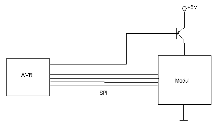 Hallo zusammen, ich hab nen Aufbau wie im Bild im Anhang. Ein AVR soll ein Modul steuern welches über SPI angebunden ist. Weiterhin kann er die Stromversorgung des Moduls über ein Pin steuern (für den Fall dass das Modul eine Weile nicht gebraucht wird und somit der Stromverbraucht des Ganzen verringert werden kann.) nun ist das Problem, wenn ich den Strom abschalte, dass das Modul über die MOSI-Leitung des SPI weiterhin Strom bekommt. Klemm ich MOSI ab is Strom definitiv komplett weg. (MOSI im inaktiven Modus ist normalerweise HIGH?) SPI abschalten bzw MOSI Pin in Tristat schicken geht leider nicht da ich noch andere Dinge per SPI steuern will. Was kann ich dagegen machen? Optokoppler für MOSI? Transistor als Schalter für MOSI? für konstruktive Vorschläge wär ich dankbar! Schönen Abend Hans