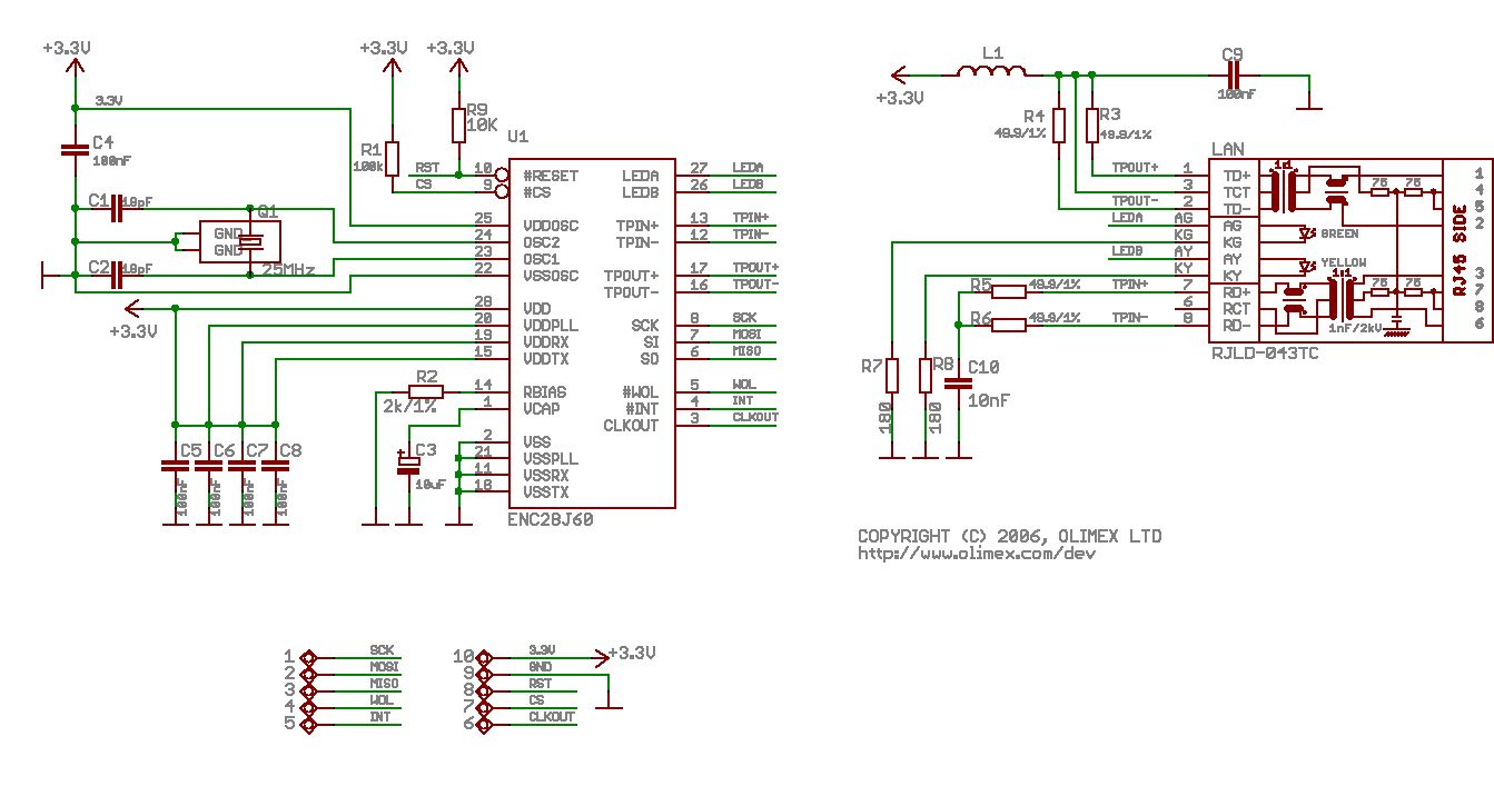 Hallo Ich will für die Ethernet Übertragung eine MagJack Buchse einsetzen. http://docs-europe.electrocomponents.com/webdocs/0798/0900766b80798cd1.pdf Wie beschalte ich die Buchse richtig? Hab nun im Netz unterschiedliche Beschaltungen gefunden. Als Bild habe ich mal eine Beschaltung angefügt. Für die von mir eingesetzte Buchse muss ich natürlich noch die Pin Belegung ändern. Im Netz hab ich aber auch eine Beschaltung gefunden wo RD+ / RD- mittels 50ohm "geuppullt" werden. Hat mal jemand einen Schaltplan sowie eine Erklärung warum man welche Beschaltung vornimmt? Danke