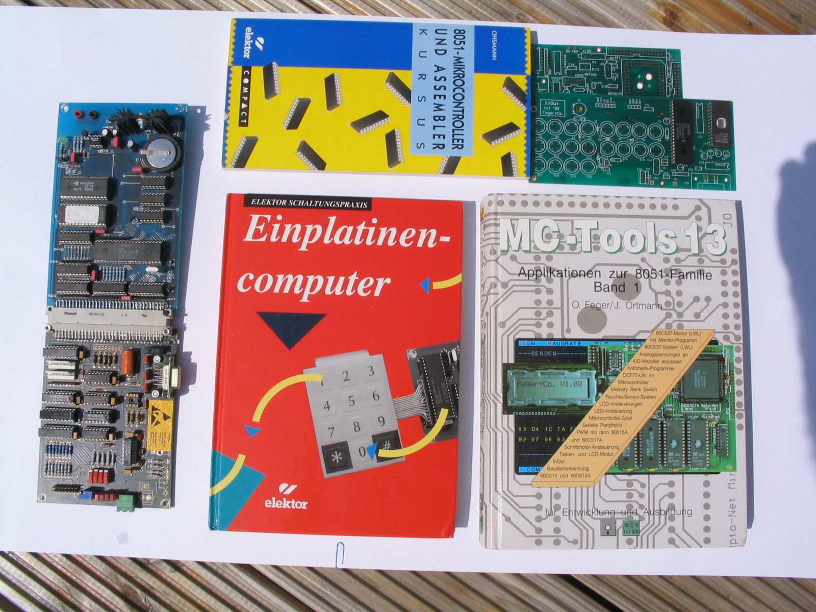Verkaufe hier ein CPU Bord mit SAB80C32 und ansteckbarem Erweiterungsboard von ELEKTOR. Mit dabei ist das 8051 Mikrocontroller und Assemblerbuch. Desweitern gibts noch weitere Artikel Von ELEKTOR das Schaltungspraxisbuch über Einplatinencomputer. Von O.Feger&J.Ortmann das MC-Tools13 Buch mit 2 Platinen Von ELEKTOR zwei CPU-Boards mit SAB80C535 Wer Interesse hat, bitte Angebot unterbreiten.