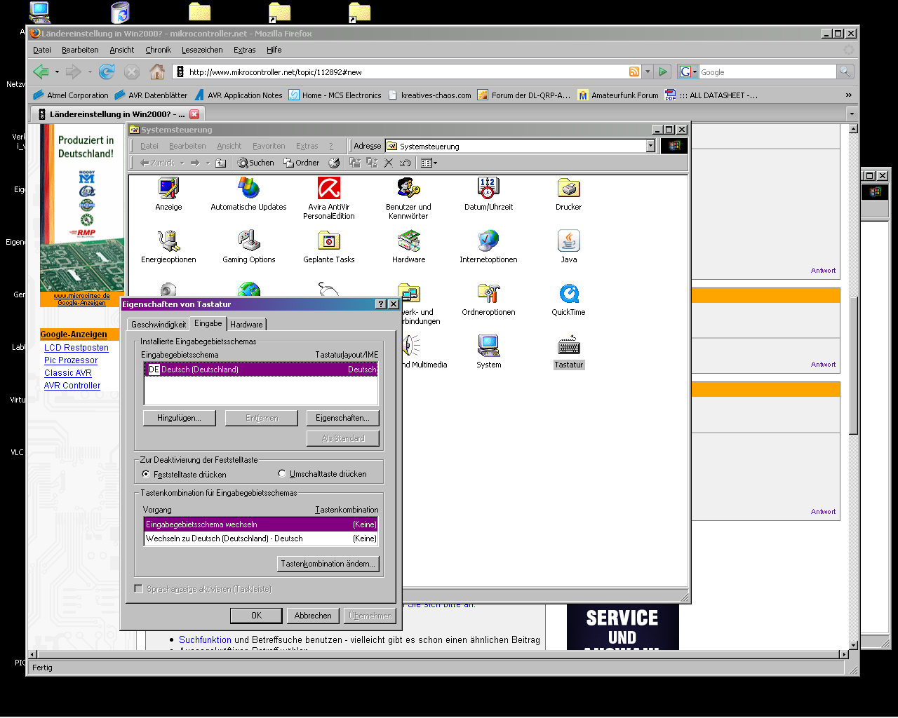 Hoi, ich such gerade die Ländereinstellung (regional settings) in einem MS-Win2000/SP4. Die sollten eigentlich in der Systemsteuerung (control panel) sein, aber nix zu finden da... Hat jemand ne Idee, wo ich die auftreiben kann? Danke