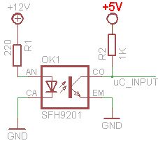 Hi, kurz was ich vorhab: - Drehzahlmessen an einer sich drehenden Plexiglasscheibe - dafür ein stück tape aufgeklebt - ATmega32 - angehängt meine Schaltung - Lichtschranke ist die hier: http://www.datasheetcatalog.org/datasheet/infineon/1-sfh9201.pdf (ich bin etwas neu und unsicher in der ganzen Materie) Ich dachte, der Fototransistor in der Lichschranke funktioniert einfach als "Schalter", der durchschaltet wenn genügend Licht reflektiert wird von der Diode. Daher wird über den Widerstand der kollektor einfach an einen Pin des uC gehängt. Ganz ähnlich wie man es mit einem Taster machen würde. Aber das funktioniert einfach nicht, weil laut uC der Taster quasi ständig gedrückt ist, der Transistor also immer durchgang hat. Ich bin mir sicher, dass hier einfach was falsch ist und ich unwissend bin in der Materie. Kann mir jemand helfen und evtl. die Schaltung korrigieren ? Gruß Chris