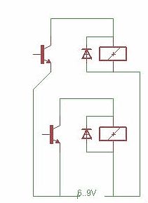 > nicht genug Spannung zum Durchschalten am Transistor an... Hast du die Transistoren richtig herum eingebaut? Nicht aus Versehen C und E verwechselt? Mit einem hfe von mindestens 100 muß das mit einem Vorwiderstand von 4k7 locker funzen... Zeig doch mal die Port-Initialisierung und die Ausgabe im Sourcecode. Schaltest du evtl. nur den Pullup ein? Das stimmt übrigens nicht ganz: http://www.ioproz.de/beschalten/beschalten.htm#Transistortreiber - Uce sat sind nicht 1,2V sondern 0,3V bis max 0,7V. - Ein BC517 hat bei 5V Uce und -55°C ein hfe von 3000. - Man macht einen Ausgang nicht ohne Not soooo empfindlich (hochohmig). Da reicht der hier verwendete BC547 locker aus. Die Berechnung des Basiswiderstands ist einfach: Rb = Spulenwiderstand des Relais * hfemin / Übersteuerung = z.B. 200 Ohm * 100 / 5 = 4k Ohm Sind die uCs denn tatsächlich kaputt?