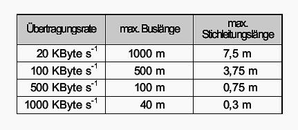 @Lothar Miller gelten die angaben auch für RS485? > > Es bleiben also nur 2 Adern für die Daten übrig. > Bei RS485 und CAN reicht das, diese Busse sind Mehrteilnehmer-fähig, > differentiell und bidirektional und brauchen dazu nur ein > Datenleitungs-Pärchen. Das ist schon klar, aber wenn ich noch 1 Pärchen mehr hätte, könnte ich den Bus hin und wieder zurück führen und hätte damit einen "Sauberen" Bus.