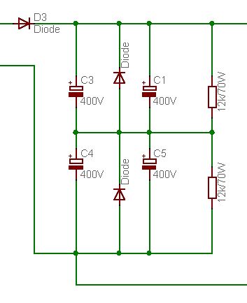 Also ich habe mal alle Infos aufgenommen und in die Schaltung eingebaut. Das einzige wo ich nicht wirklich was gefunden habe war das Gleichmässige aufladen der Kondensatoren. Habe mir die Beiträge durchgelesen und im INET gesucht aber nichts gefunden. Benedikt K. wrote: >> Wohin gehört eine Diode? >Parallel zu dem Elko. Du meintest eher in Serie oder? Die Diode D4 muss aber mächtig was aushalten. Diode D2 darf aber auch nicht schwach sein oder soll ich die überhaupt weglassen? Behindert oder schadet diese?