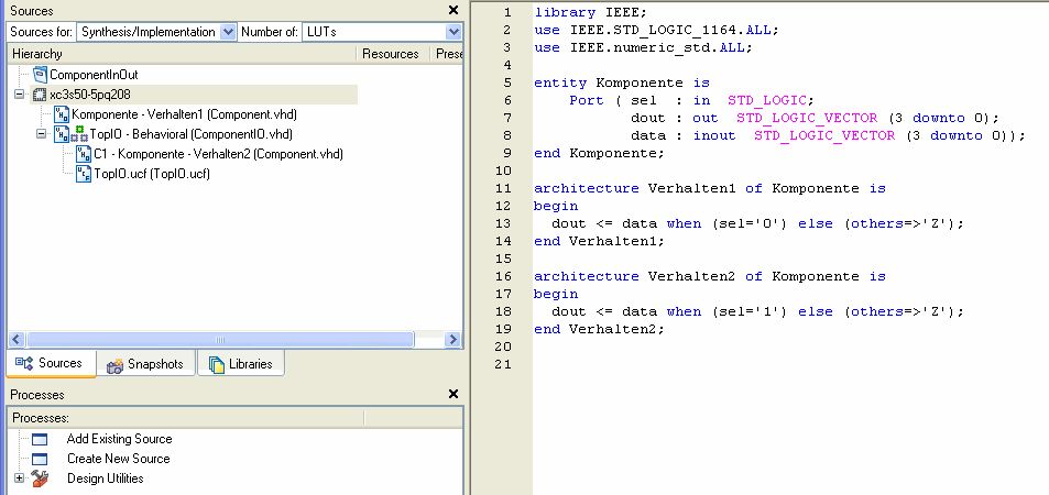 Danke für den screenshot. Zumindest weiss ich jetzt, dass es gehen soll. Irgendwie triggere ich einen Bug, sowohl in ISE 10.1 wie in 9.1. Die Datei wird nicht mehr angezeigt (source for: synthesis/implementation) Hinzufügen lässt sie sich auch nicht mehr (meldung: already in project). Das ganze passiert wenn man am Namen der Architecture was ändert oder mehrere Architecture hat.