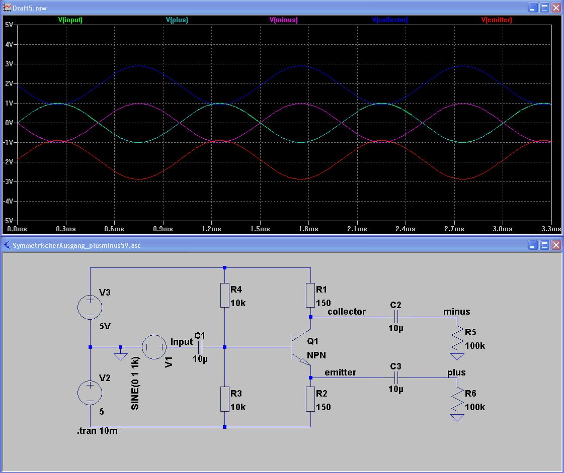 > Hmm, die diskrete Lösung mit dem Transistor sieht ja schön kompakt aus. > Hat die auch Nachteile gegenüber meiner Lösung? Du kannst bei der OP-Lösung mit Rail-to-Rail am Ausgang (also nicht mit TL072!!) jeweils bis zu 10Vss erreichen. Bei der Transistorlösung ist niemals mehr als 5Vss möglich. Und das sind dann (rechnerisch) maximal 1,8Veff. Aber ein klarer Vorteil ist die geringe Anzahl verwendeter Komponenten, die sich positiv auf das Rauschen auswirkt.