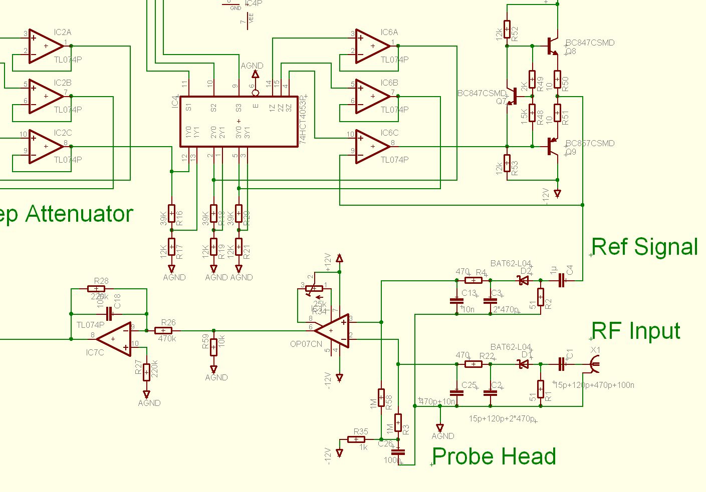 Hallo, aus meiner Sicht bist Du mit der BAT62 schon auf dem richtigen Wege, diskret geht das auch über zwei BAT16-046. Die Temperaturdrift könntest Du mit der Auswertung eines LM335H mindern. Habe Dir mal eine Kopie angehängt. Das was Du da baust, gibt es schon von Rohde & Schwarz, nennt sich dort URV5-Z5 und splielt mit dem Grundgerät URV5 oder neueren Modellen. Sowas gibt´s auch gebraucht zu halbwegs humanen Preisen. Grüße