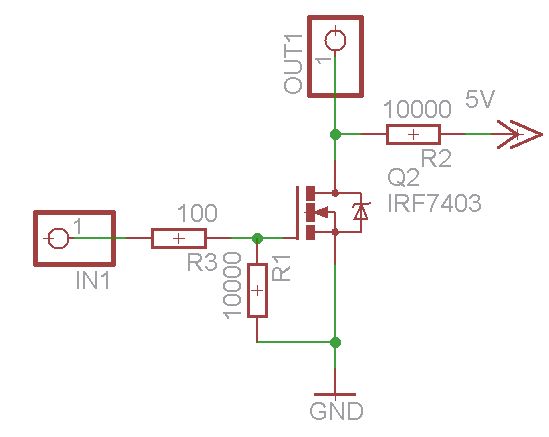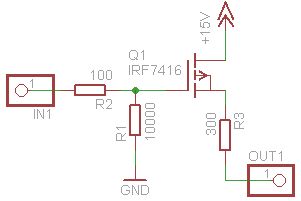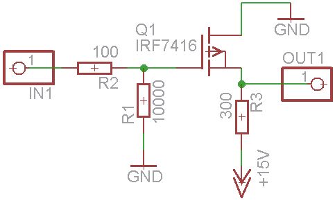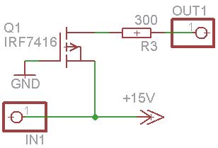 Hallo, ich habe das Problem, dass ich mich bei einer MOSFET-Schaltung (IRF7403) vertan habe. Das ganze sollte ein digitaler Ausgang für höhere Spannungen als die vom Mikrocontroller verwendete (5 V [die grüne Leitung die aus dem Bild führt, geht zum Mikrocontroller]) werden. Die 300 Ohm sollen den Strom durch den MOSFET begrenzen (falls mal ein angehängtes Bauteil einen zu geringen Eingangswiderstand hat). Es funktioniert aber leider nicht wie gedacht und mit switchercad ausprobiert. Ich bekomme zwar ein high an den (in der Schaltung) rot dargestellten Ausgangspin, das entspricht aber nur 3,1 V obwohl ich als Logiklevel 4,5V (gemessen) dran angelegt habe. Außerdem sinkt die Spannung nur extrem langsam, wenn ich den Pin am Mikrocontroller auf 0 setze. Woran kann das liegen? Switchercad zeigte mir keine solchen Entladekurven für den Mosfet an. Wie kann ich meine Schaltung, wenn nötig mit Fädeldrähten mit möglichst wenig Bauteilaufwand noch zum Funktionieren überreden? Lg Sebastian