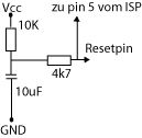 Hallo, wo genau befindet sich der 2k7 und der 10µF, hoffentlich nicht am Resetpin ? Haste dicht am Processor einen 100 nF Kondensator ? Gruß, Arno