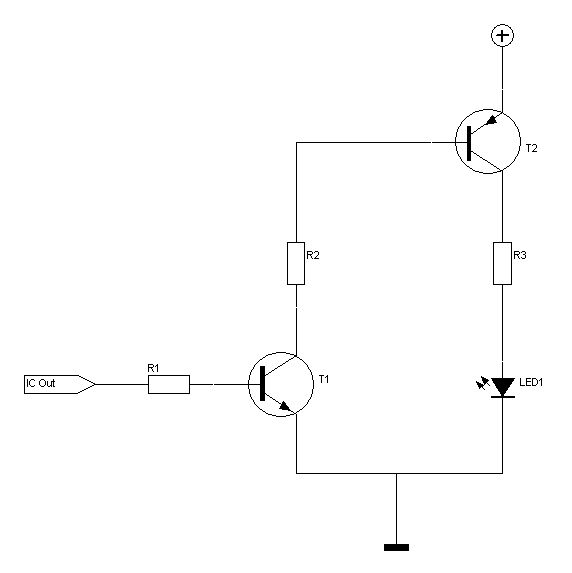 Danke erstmal für die vielen Antworten @lorio: Wäre nett wenn mir jemand die Widerstandswerte berechnen könnte. Hier die Transistortypen: BC557B und BC547A LED zieht 40mA an + liegen 7,2 Volt an, An IC out ist ein Atmega8 Schonmal Danke