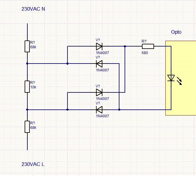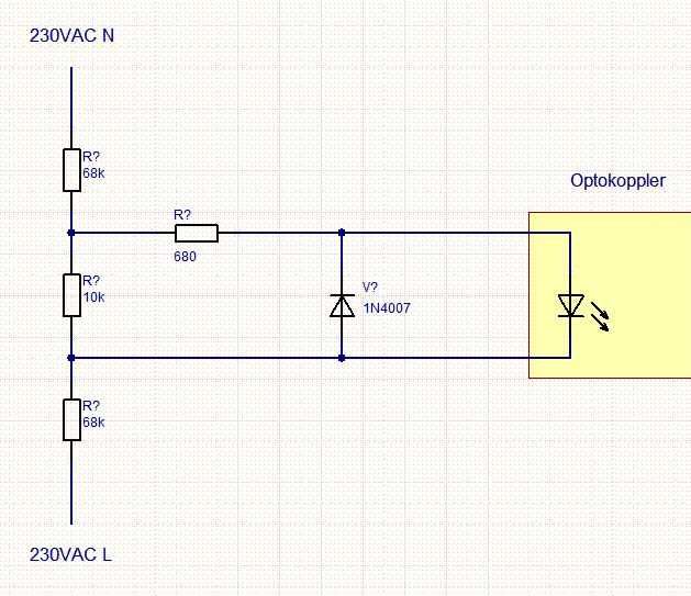 also 230v direkt gleichrichten, dann vorwiderstand + zdiode und dann vorwiderstand für den opto? hört sich vernünftig an :)